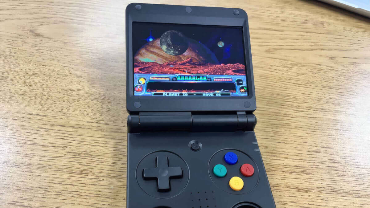 The buttons feel great, and thankfully, they are not as loud as the original Anbernic SP. With the D-pad, it is the usual great quality you can expect from Anbernic. The hinge feels great as well. The screen looks great, but almost a bit saturated. If you like deep colors, you will love this.