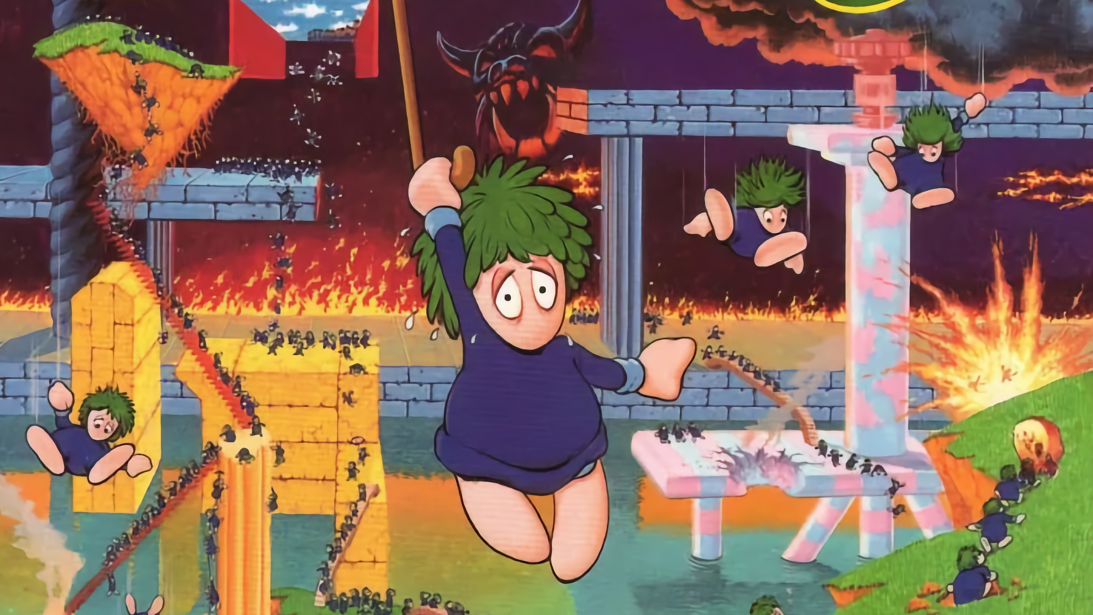 The original C64 port of Lemmings, released by Psygnosis in 1994, was functional but limited by the hardware constraints of the era. It featured basic sprite handling, minimal scrolling, and stripped-down sound design compared to the Amiga original. Karwath’s version addresses these limitations with full-screen soft scrolling, a technically demanding feature on the C64, along with detailed sprite animations for all lemming actions like digging, bashing, and building.