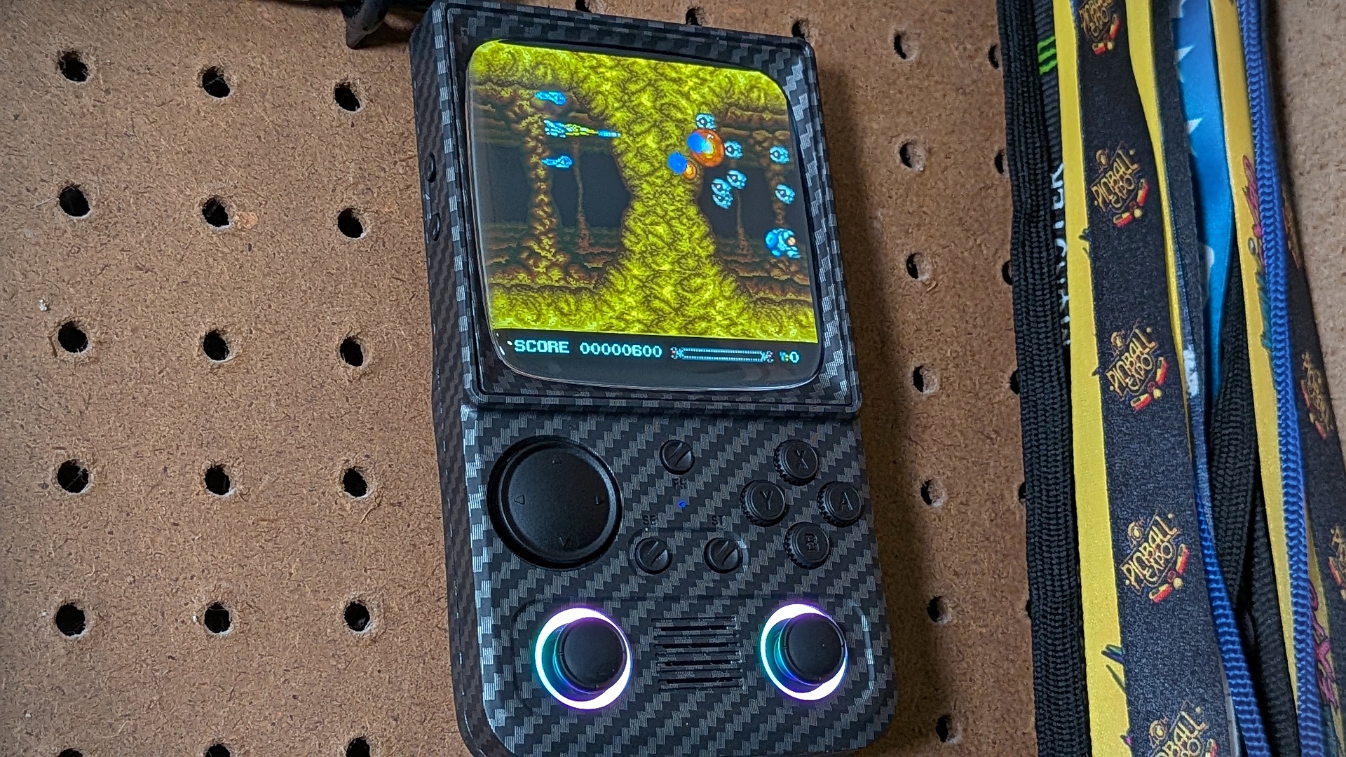 Before we go any further, yes, there is still some bezel on the screen edges leftover from the R36T. The nature of having the curved bubble over the screen to simulate the CRT effect makes it difficult to eliminate. Otherwise, though, I think that the 4″ 720×720 1:1 screen serves the intended effect better than it did on its baby brother device.