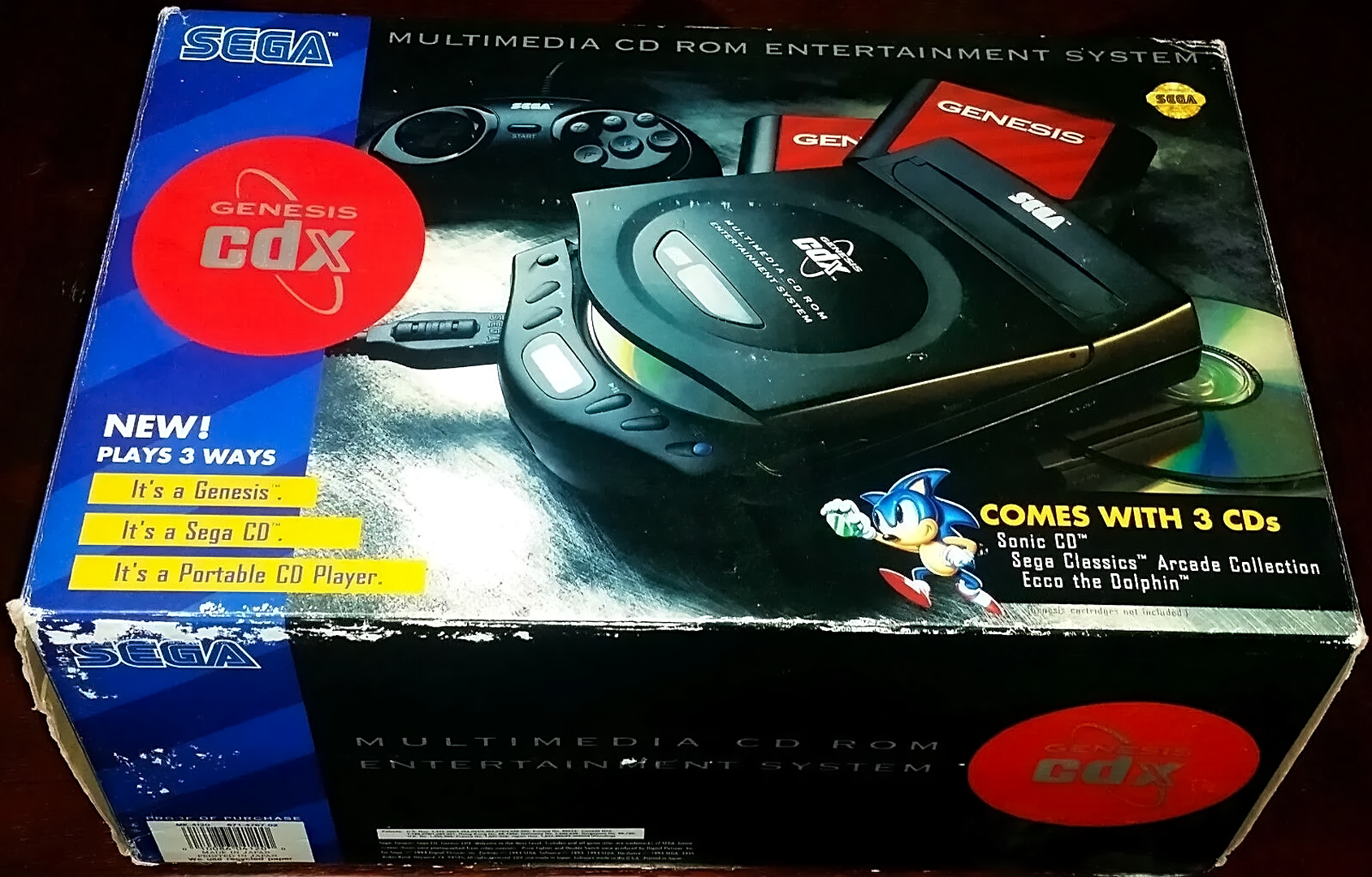 Sega released the CDX in North America in April 1994 as a last-ditch effort to generate interest in the struggling Sega CD format. Known as the Multi-Mega in Europe, Japan, and Brazil, the device combined a Genesis, Sega CD, and portable CD player into a single compact unit slightly larger than a standard Discman of the era. The sleek black design featured a top-loading CD drive, a cartridge slot on top of the unit, and an orange backlit LCD display that showed track numbers when playing audio CDs or displayed “GAME” when a cartridge or CD-ROM game was inserted.
