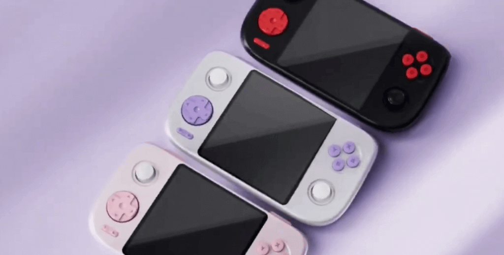 Coming in three distinct colors, including a black option with red accents, a white option with lavender accents, and a rose option with pink accents, the device looks strikingly similar to an RG CubeXX, though with the D-pad underneath the left analog stick.