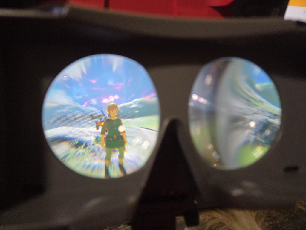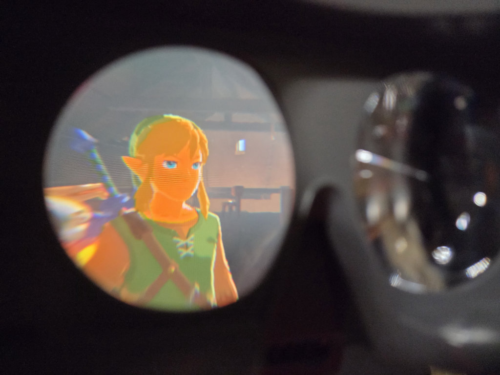Yep. The forgotten Labo VR integration for The Legend of Zelda: Breath of the Wild works completely as intended through the Virtual Boy headset. And yes, VR mode on Switch 2 has an improved resolution and 60fps. So this mode is literally the entire game, but in VR. Menus are buggy and clipped, but readable. The resolution, though, even on the Switch 2, is still very low, and if you have an eagle eye, you can literally see the RGB pixel grid. It truly feels like you are staring 1″ away from a screen, eye bleed and all.